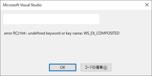 とあるリソースをVisual Studio2019で開こうとしたら、error RC2104: undefined keyword or key name: WS_EX_COMPOSITED というエラーが出た。 error RC2104: undefined keyword or key name: WS_EX_COMPOSITED でも、おかしい。このキーワードはWindowsに存…