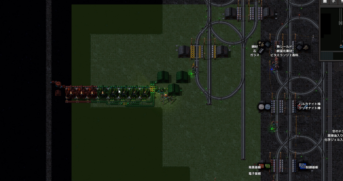 Nauvis地上から貨物を運び込む発着場が、貨物駅から遠くて何かと面倒に感じてきた。そこで、発着場を宇宙ステーション跡地そばから移すことにした。